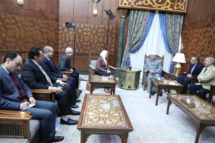 التقت الدكتورة هالة زايد وزيرة الصحة والسكان، بفضيلة الإمام الأكبر الدكتور أحمد الطيب، شيخ الأزهر الشريف، اليوم الإثنين، في مقر مشيخة الأزهر، وذلك لإلحاق عدد من أطباء جامعة الأزهر بمختلف فروعها ضمن برنامج التعلم والتدريب في التعليم الطبي والبحث والممارسة الإكلينيكية للقادة الطبيين والمهنيين في مصر بكلية طب هارفارد الأمريكية.