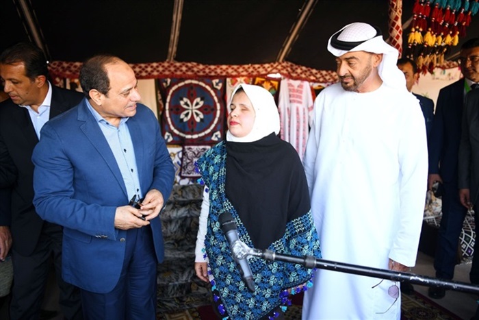 السيسى وولى عهد أبوظبى يتفقدان المعرض التراثي والثقافي لأعمال وفنون الحرف اليدوية البدوية المتنوعة