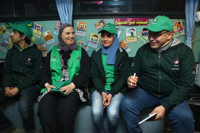 ورافقت وزيرة التضامن الاجتماعي الوحدات المتنقلة لفريق حماية الأطفال والكبار بلا مأوى، والتي تجوب القاهرة الكبرى وعدد من محافظات الجمهورية بحثاً عن المشردين من الكبار والأطفال.