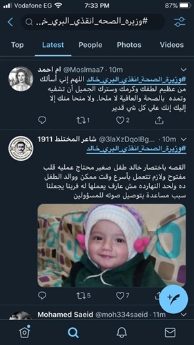 وأوضح مجاهد أن المكتب الإعلامي كان قد رصد إستغاثة والد الطفل "البري" عبر هاش تاج تصدر التريند بمواقع التواصل وخلال ساعتين فقط استطاع المكتب الإعلامي الاتصال بوالد الطفل، والذي أوضح أن ابنه الذي يبلغ من العمر عام و10 أشهر يعاني من مشاكل في القلب ويناشد وزيرة الصحة بعلاجه وسرعة إجراء الجراحه له.