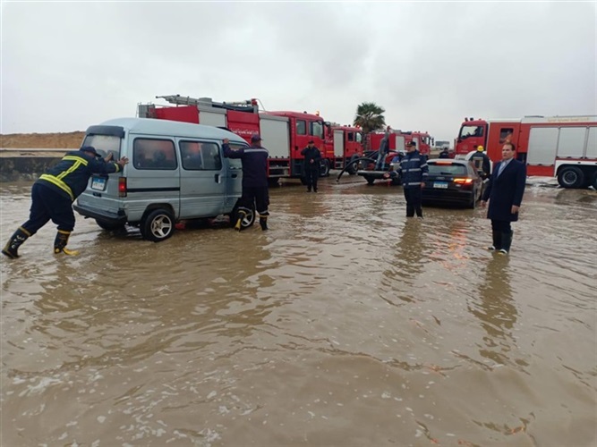 بالصور.. سيارات الحماية المدنية تشفط مياه الأمطار من الطرق والمحاور الرئيسية
