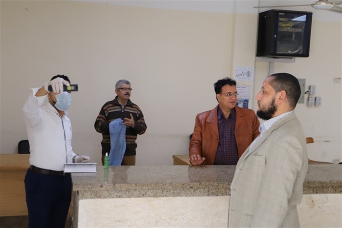 تابع وزير القوي العاملة محمد سعفان بنفسه ، صباح اليوم الثلاثاء ، بديوان عام الوزارة تطبيق الإجراءات الاحترازية لمواجهة فيروس "كورونا" (كوفيد - 19) ،وذلك من خلال الكشف علي جميع العاملين، ومن يدخل الوزارة من المواطنين من الجمهور المتعاملين معها ، للتأكد من سلامته، وكان الوزير أول من خضع للكشف الطبي ، ومعه قيادات الوزارة ، وتم التأكد من أن درجة الحرارة طبيعية بين 36 و37 درجة.