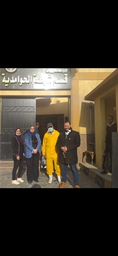 دكتورة ولاء مكاوي اول نائب رئيس المدينه يتخذ الإجراءات الاحترازيه والوقائيه من فيرس كرونا قد قامت بتعقيم الاماكن الحيويه بمدينه الحوامديه خاصه اقسام الشرطه وأماكن الحجز ومجلس المدينه والمؤسسات الحكومية بالمدينه.