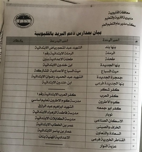 تخصيص ١٥ مدرسة كمكاتب بريد لصرف المعاشات بالقليوبية