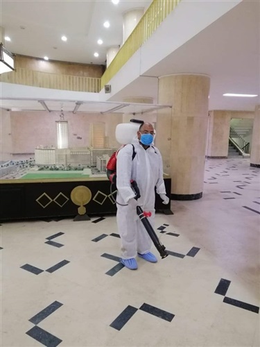 ويأتي ذلك في إطار الجهود التي تبذلها وزارة الزراعة في تطهير المنشآت الحكومية مجانا للوقاية من فيروس كورونا.