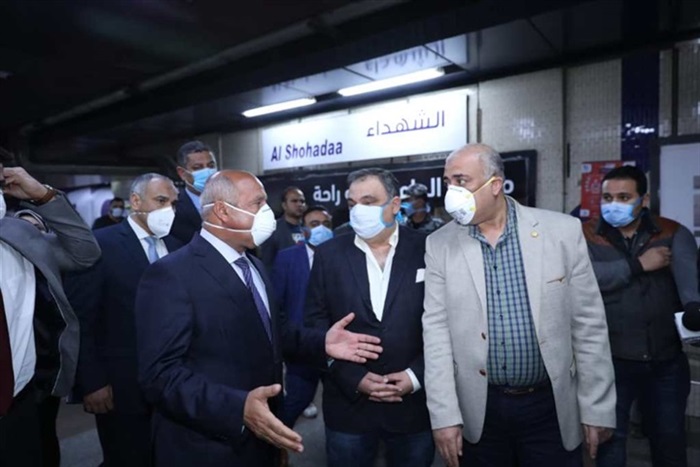 حيث شهد الوزير توزيع الكمامات على عدد كبير من الركاب سواء داخل المحطة أو في عدد من القطارات وكذلك تركيب أجهزة لتعقيم الأيدي في كافة أنحاء المحطة حيث ثمن الوزير هذه المبادرة الوطنية، مشيرا إلى أن رجال مصر الوطنين دائما في خدمة المواطن المصري داعيا المواطنين بارتداء الكمامات وخاصة في وسائل المواصلات، مشيرا إلى أنه يتابع على مدار الساعة تطهير وتعقيم محطات وقطارات مترو الأنفاق.