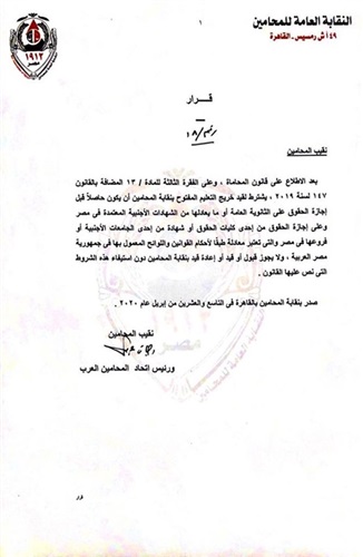 أصدر نقيب المحامين رجائي عطية، قرارًا اليوم الأربعاء الموافق 29/4/2020، بشأن شروط قيد خريجي التعليم المفتوح بالنقابة.