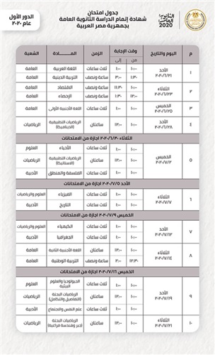 التعليم تعلن جدول امتحانات "الثانوية العامة" الجديد