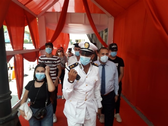 الشرطة توزع الكمامات على الناخبين بلجان الدوبارة