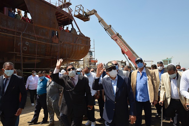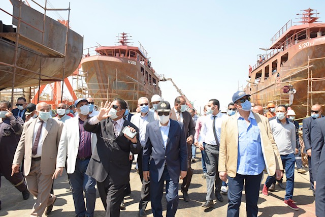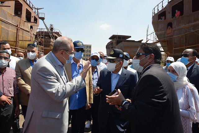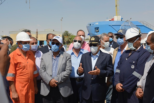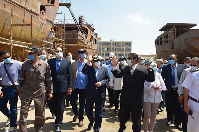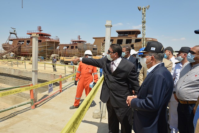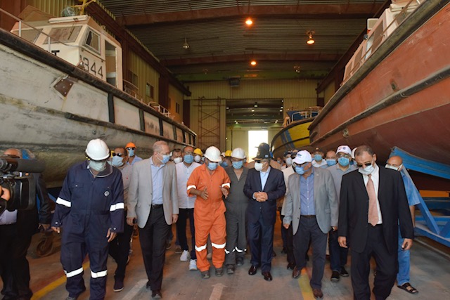 تلا ذلك، التوجه لتفقد شركة ترسانة السويس البحرية والوقوف على مستجدات خطة إعادة هيكلة الشركة و تطورات العمل بأنشطة الشركة المختلفة، حيث تابع أعمال الصيانة والإصلاح التي تتم للوحدات البحرية على الحوض الجاف، والحوض العائم بالشركة، كما تفقد أعمال بناء سلسلة من سفن الصيد التي تتولى شركات الهيئة التابعة بنائها.