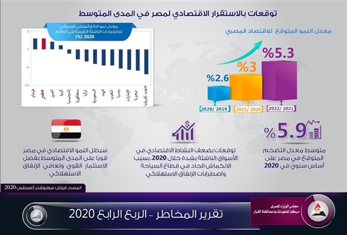 واوضح المركز انه رغم ما شهده الاقتصاد العالمي في الفترة الأخيرة بسبب تداعيات كورونا السلبية، إلا أن مؤسسة فيتش أكدت في تقريرها حول المخاطر في مصر في الربع الرابع من 2020، على استمرار إيجابية نمو الاقتصاد المصري وذلك بفضل برنامج الإصلاح الاقتصادي الذي جعل مصر واحدة من أهم الأسواق الناشئة الرئيسة في العالم.