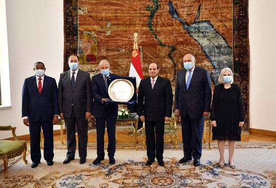 السيسي يتسلم "درع العمل التنموي العربي لعام 2020" ويشيد بجهود الجامعة العربية