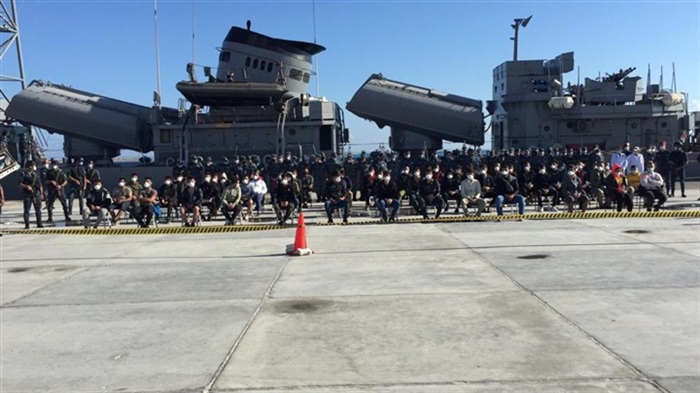 نجحت القوات البحرية المصرية فى إنقاذ أحد المراكب التى ترفع العلم التركى فى عمق البحر الأبيض المتوسط بعد إصداره إشارة إستغاثة الساعة الثانية عشر ظهر أمس تفيد بحدوث عطل فنى مفاجىء به على بعد 270 كم شمال مدينة سيدى برانى ، على الفور صدرت الأوامر بدفع الفرقاطة المصرية " الظافر " لموقع الحدث ، وتم نقل جميع الركاب على متن الفرقاطة المصرية بإجمالى 57 شخص ( 48 رجل – 6 سيدات – 3 أطفال ) من جنسيات مختلفة ( 31 عراقى – 23 إيرانى – 2 تركى – 1 مصرى ) مع سحب المركب العاطلة ورسوها صباح اليوم على رصيف قاعدة 3 يوليو البحرية بجرجوب ، وتم تقديم العلاج الطبى اللازم وكافة الإحتياجات الإدارية لجميع الركاب وسيتم إتخاذ كافة الإجراءات القانونية بواسطة السلطات المختصة .