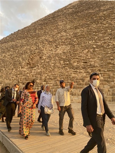 زارت حرم رئيس دولة الكونغو منطقة آثار الهرم، والتي استقبلها اشرف محيي الدين مدير عام منطقة اثار الهرم و رافقها الزيارة.