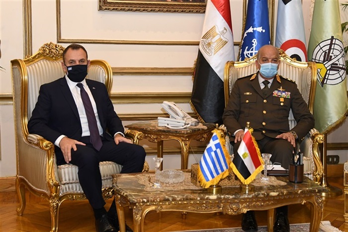 إلتقى الفريق أول محمد زكى القائد العام للقوات المسلحة وزير الدفاع والإنتاج الحربى بالسيد وزير دفاع جمهورية اليونان السيد نيكولاوس باناجيوتوبولوس والوفد المرافق له الذى يزور مصر حالياً فى زيارة رسمية تستغرق عدة أيام وذلك على هامش تنفيذ التدريب البحرى الجوى المشترك " ميدوزا -10" والذى تجرى فعالياته بجمهورية مصر العربية ، حيث أجريت له مراسم إستقبال رسمية بمقر الأمانة العامة لوزارة الدفاع وعزفت الموسيقات العسكرية السلام الوطنى لكلا البلدين .