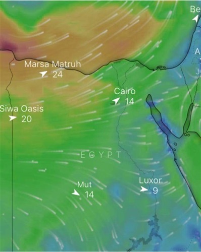 كشفت هيئة الأرصاد الجوية، أن صور الأقمار الصناعية تشير لنشاط الرياح المثيرة للرمال والأتربة على الصحراء الغربية والسواحل الشمالية والقاهرة والوجه البحرى ومدن القناة.