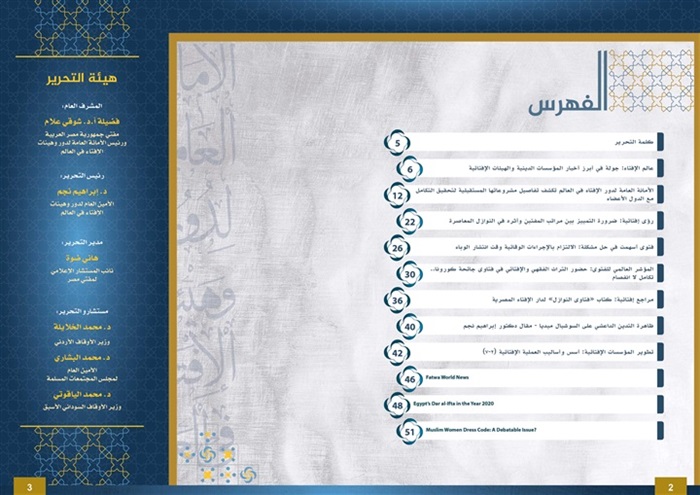 وأخيرًا في باب "منبر المفتين" يكتب الدكتور إبراهيم نجم -الأمين العالم للأمانة العامة لدور وهيئات الإفتاء في العالم-، مقالًا مهمًّا تحت عنوان "ظاهرة التدين الداعشي على السوشيال ميديا"، إضافة إلى مقال آخر مترجم للغة الإنجليزية حول إنجازات دار الإفتاء المصرية خلال العام ٢٠٢٠م.