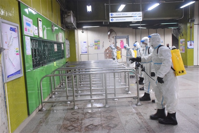 كما شملت أعمال التطهير والتعقيم مجمع ميناء القاهرة البرى " بالترجمان " ومحطة ركاب النقل الجماعى " بالقللى " بإعتبارهما مقصداً رئيسياً لكثير من المسافرين بشكل مستمر ، حيث تم تطهير وتعقيم أماكن إنتظار الركاب والممرات الداخلية والعديد من المبانى فضلاً عن تطهير عدد من الأتوبيسات التى يستقلها أعداد كبيرة من المواطنين على مدار اليوم وذلك لضمان سلامة المواطنين والحد من إنتشار الفيروس ، كما تم تطهير محطتى مترو جمال عبدالناصر وأحمد عرابى وذلك من خلال أطقم التطهير المحمولة .