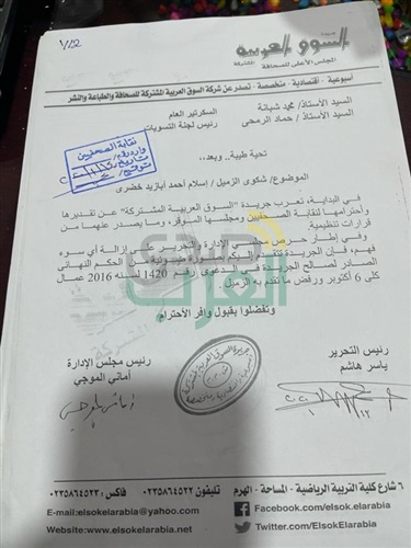 بالمستندات.. "السوق العربية المشتركة": اسلام احمد ابازيد ليس من صحفيي الجريدة.. ومفصول بحكم محكمة الاستئناف والنقض