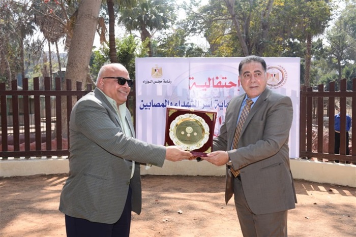 وفي نهاية الإحتفالية قام السيد أمين عام المجلس بتقديم الهدايا على أسر السهداء والمصابين بحضور السيد اللواء محمد رجائي رئيس الإدارة المركزية لحدائق الجيزة .