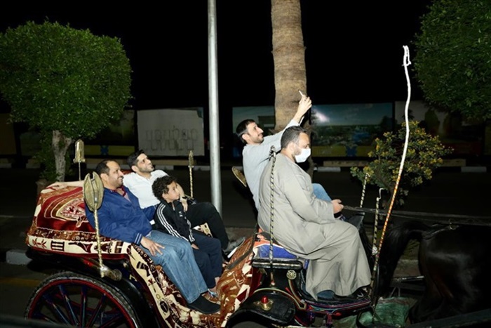 استقل الدكتور حمد الشامسي سفير دولة الإمارات العربية المتحدة لدى مصر والمندوب الدائم لدى جامعة الدول العربية، وفريق عمله، عربات الحنطور في نزهة على كورنيش النيل شاهد خلالها المعالم الأثرية في الأقصر.