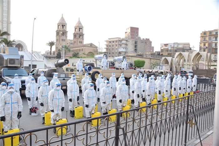 إنطلاقاً من الدور الفعال الذى تقوم به القوات المسلحة فى مساندة كافة أجهزة الدولة ومؤسساتها لمجابهة إنتشار فيروس كورونا ، وفى إطار مشاركة القوات المسلحة الإخوة المسيحيين الإحتفال بعيد القيامة المجيد أصدرت القيادة العامة للقوات المسلحة أوامرها لإداراتها التخصصية لدفع عربات التعقيم المتحركة والتطهير الثقيلة وأطقم التطهير المحمولة لإجراء التعقيم والتطهير اللازم للعديد من دور العبادة التى تشهد إقبالاً كثيفاً من المواطنين عليها خلال عيد القيامة المجيد .