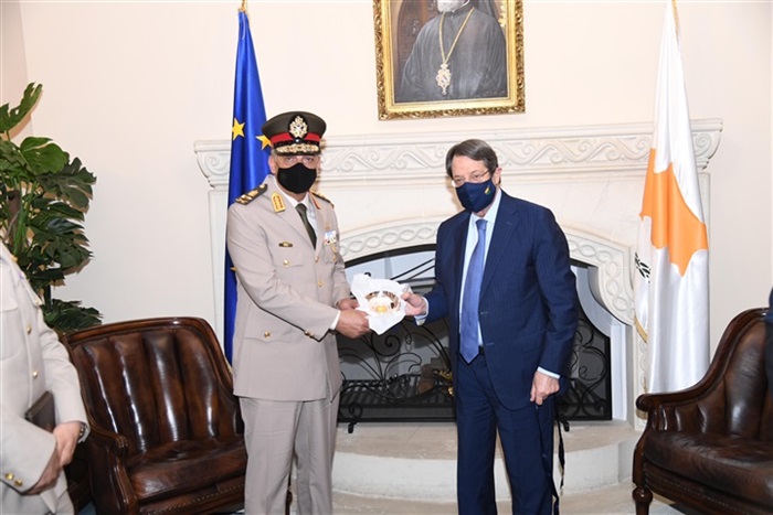 وإلتقى الفريق أول محمد زكى بالرئيس القبرصى نيكوس أناستاسيادس بحضور وزير الدفاع القبرصى ، حيث نقل