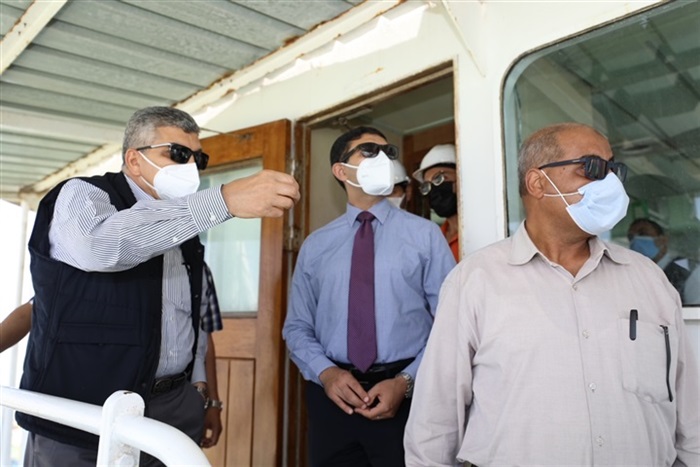 خلال جولته التفقدية بموقع العمل وبرفقته عدد من أعضاء مجلس إدارة الهيئة، والقائمين على المشروع، تعرف رئيس الهيئة على مستجدات أعمال التكريك بالمشروع حيث بلغت إجمالي كميات الرمال المستخرجة 65 ألف متر مكعب.