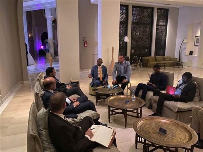التقي رئيس غرفة التجارة والصناعة والزراعة زليتن الاستاذ/ خالد بلعيد والوفد المرافق له من مدينة زليتن مع سفير دولة جنوب افريقيا تونس - ليبيا على هامش ملتقى جربة الدولي للأعمال .
