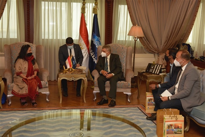 استقبل الفريق أسامة ربيع رئيس هيئة قناة السويس، اليوم الإثنين، بمبنى الإرشاد بالإسماعيلية، وفدا من سفارة الهند برئاسة السيدة/ آر. جايشرى، القنصل الهندي لدى جمهورية مصر العربية، وبرفقتها السيد/ سايتش بلاكريشنا، سكرتير للشئون القنصلية بسفارة الهند و د/محمد حامد علي، مساعد القنصل الهندي. تأتي الزيارة بهدف بحث سبل التنسيق المشترك ومتابعة أحوال الطاقم الهندي المتواجد على متن سفينة الحاويات البنمية EVER GIVEN، المحتجزة حاليا بمنطقة الانتظار بالبحيرات الكبرى بالإسماعيلية.