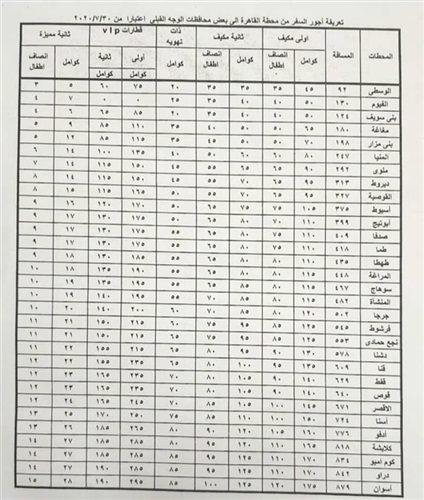 طرحت هيئة السكة الحديد 131 ألف مقعد في القطارات المختلفة لنقل الركاب إلى محافظات الوجه القبلي خلال عيد الأضحى المبارك، وتتنوع القطارات ما بين مكيفة ومميزة ومحسنة، بالإضافة إلى القطارات المجدولة بالتشغيل اليومي، وذلك خلال الفترة من 13 يوليو حتى 31 يوليو2021.