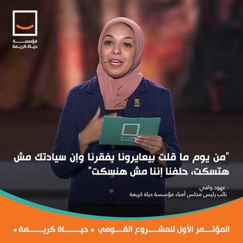 أكد عهود وافى، نائب رئيس مجلس أمناء مؤسسة حياة كريمة، أننا نعمل على الأرض لتحقيق هدفنا، المتمثل فى أن يعيش كل أهالينا فى مصر الحياة الكريمة التى يحلم بيها الجميع.