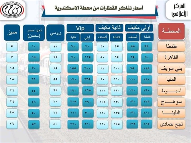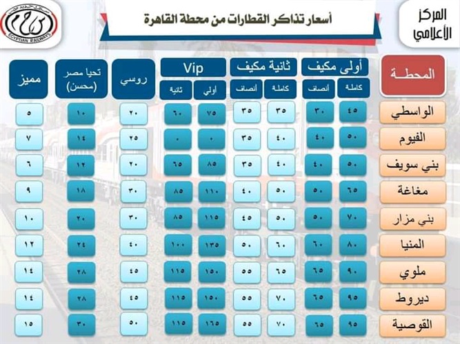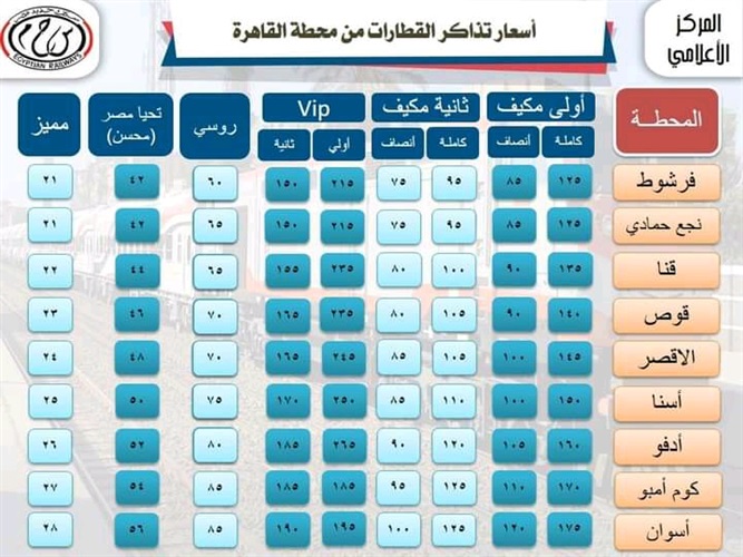 حقيقة زيادة أسعار تذاكر القطارات "المكيف والروسي والمميز والمطور"
