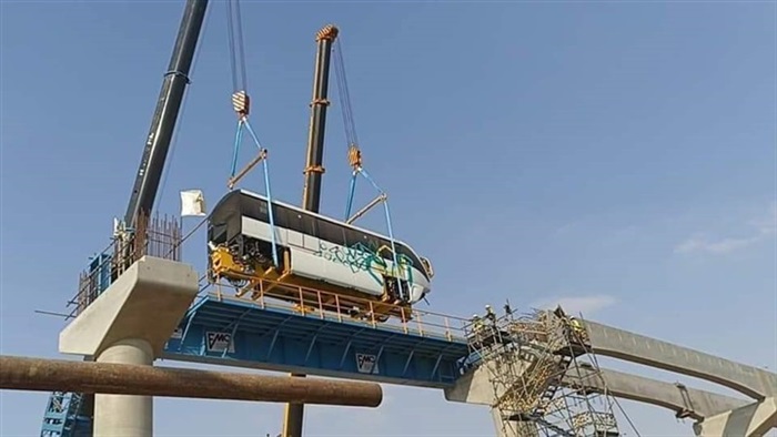 "الحلم أصبح حقيقة".. بدء التركيب التجريبي لعربات المونوريل على السكة