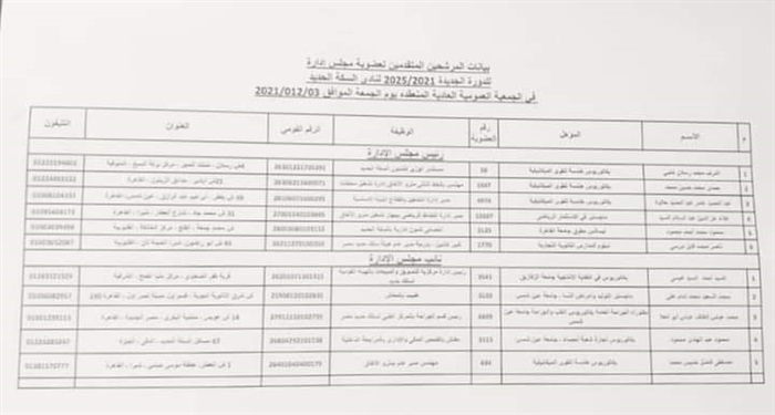 وشمل الترشيح عدد 5 مرشحين بالتقدم على منصب نائب رئيس مجلس إدارة النادي أبرزهم السيد عيسى رئيس الإدارة المركزية للمبيعات والدكتور محمد عباس رئيس قسم الجراحة بالمركز الطبى والدكتور محمد السعيد محمد ومصطفى فاضل ومحمود عبدالهادي .
