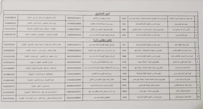 كما شمل الترشيح عدد 4 على منصب أمين الصندوق وعدد 8 على منصب عضو مجلس الإدارة تحت السن وعدد 30 على منصب عضو مجلس الإدارة فوق السن.
