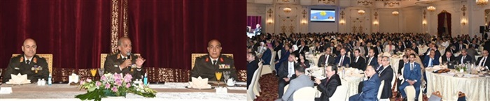وألقى الفريق أول محمد زكى كلمة أعرب خلالها عن تقديره لأعضاء مجلسى النواب والشيوخ ، مشيراً إلى أهمية التواصل الدائم لمتابعة كافة الموضوعات والقضايا التى تطرأ على الأصعدة المحلية والإقليمية والدولية بما يدعم الدور الذى يقوم به أعضاء مجلسى النواب والشيوخ فى دعم ركائز الأمن القومى بإعتبارهم ممثلى مختلف أطياف الشعب المصرى العظيم ، كما أكد على جاهزية القوات المسلحة لردع كل من تسول له نفسه للعبث بأمن مصر وإستقرارها .
