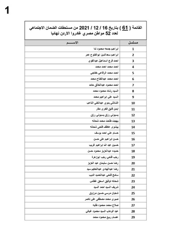 أعلن وزير القوى العاملة، محمد سعفان، أن مكتب التمثيل العمالي التابع للوزارة بالسفارة المصرية بعمان-الأردن، استطاع بالمتابعة اللحظية والجهود المبذولة والمقابلات مع المسئولين بمؤسسة الضمان الاجتماعي بالأردن، واستكمالا لما تم تحويله سابقا، تم تحويل القائمة الـ 61 من مستحقات الضمان الاجتماعي لنحو 52 عامل مصري لدى المؤسسة غادروا عمان نهائيا.