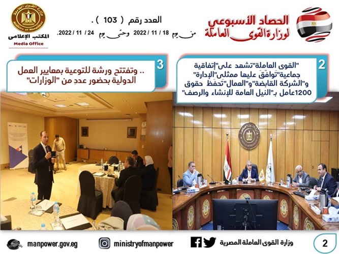 "حماية العمالة غير المنتظمة ..اتفاقيات ومفاوضات عمل جماعية ..والالتزام بمعايير العمل الدولية ..وحماية العمالة المصرية في الخارج" ،كلها عنوان تصدرت بيانات "الوزارة" هذا الاسبوع ..