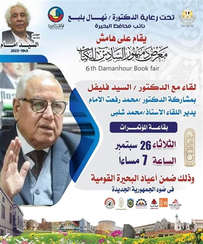 تحت رعاية الدكتورة نهال بلبع نائب محافظ البحيرة، وضمن فعاليات اليوم الأول من معرض دمنهور السادس للكتاب والمقرر افتتاحه غدا الثلاثاء الموافق 26 سبتمبر الجاري والذى سيستمر حتى 5 أكتوبر المقبل