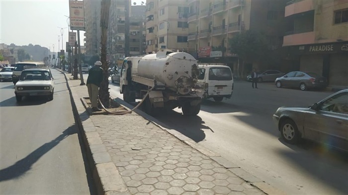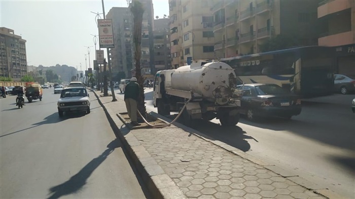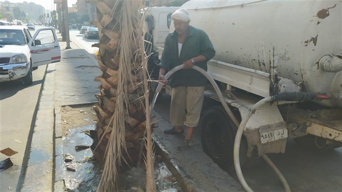 متابعه رى الأشجار بالجزيرة الوسطى بشارع خاتم المرسلين