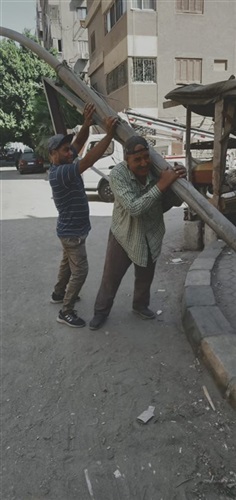 رفع عامود اناره آيل للسقوط بشارع الهنيدي