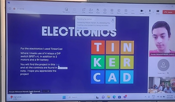 وتضمنت هذه الشراكة تنظيم تدريبات متخصصة في مبادئ الروبوتات وتصميم الدوائر الكهربية و الأنظمة الميكانيكية والبرمجه لطلاب المدارس الحكومية، بهدف تأهيلهم وتحسين قدراتهم التقنية للمشاركة بفعاليات المسابقة الدولية المقرر عقدها بمدينة العلمين في شهر اكتوبر القادم باذن الله .