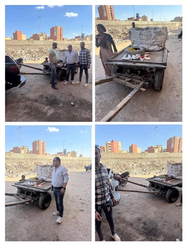 وفي ذات السياق، نفذ حي العمرانية حملة مكبرة تم خلالها ضبط عدد 2 تروسيكل لفرز المخلفات وعدد 3 عربات كارو أثناء محاولتها إلقاء المخلفات بالطريق العام، وتم اتخاذ الإجراءات القانونية اللازمة حيال المخالفين.