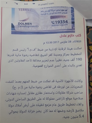 هذا المقاول يدعي محمد سعد عبد اللطيف سبق أن حررت له الرقابة الإدارية عام ٢٠١٧ قضية رشوة لمدير التخطيط العمراني بمبلغ ١٩٠ ألف جنيه.