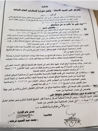 الصورة مهداة للسيد الرئيس عبد الفتاح السيسي والسيد محافظ كفر الشيخ ومدير التفتيش الفني علي أعمال البناء بوزارة الاسكان لوقف تلك المهزلة خاصة وأن القيادة السياسية دائما ما تشدد علي ضرورة إزالة تعديات البناء في حينه.