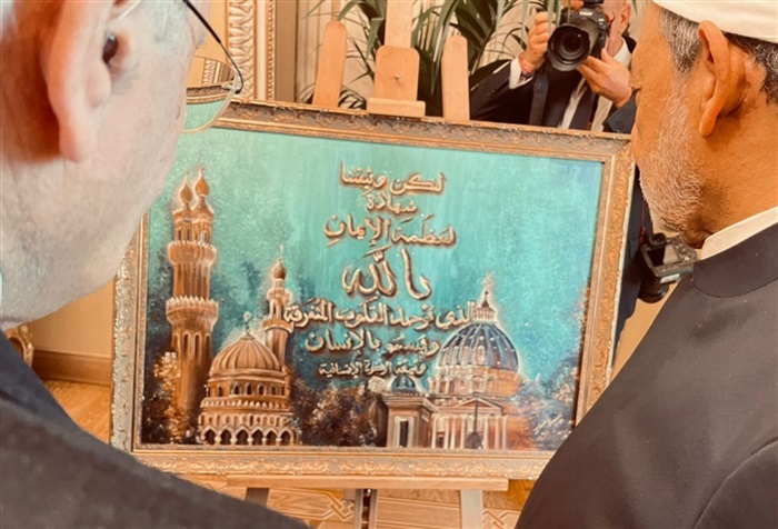 وقد قدم فضيلة شيخ الأزهر الشريف هدية الي الرئيس الايطالى عبارة عن لوحة فنية تعبر عن ما تضمنته من قيم ومعانى وثيقة الاخوة الإنسانية الموقعة بين الأزهر الشريف والفاتيكان ولقيمة وعظمة الإيمان بالله مع صورة لكل من الأزهر الشريف والفاتيكان، الأمر الذي كان له صدي وتقدير عميق لدي الرئيس الإيطالي.