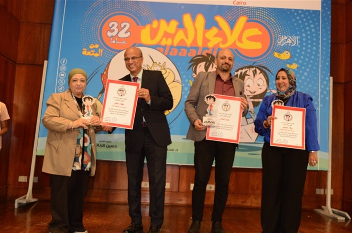 كرمت مجلة علاء الدين في احتفاليتها بأعياد الطفولة، برئاسة تحريرها الكاتب الصحفي حسين الزناتي، عددًا من الشخصيات البارزة التي ساهمت في إثراء المحتوى الثقافي ودعم الإبداع الموجّه للأطفال. وشمل التكريم كلًا من ولاء محمد، مدير الحديقة الثقافية بالسيدة زينب، والكاتب المبدع وليد كمال، والأستاذة نجلاء علام، رئيس تحرير مجلة قطر الندى، والكاتب الكبير أحمد زحام، أحد أوائل الكتّاب الذين أثروا مجلة علاء الدين بكتاباتهم. وجاء هذا التكريم تقديرًا لإسهاماتهم المتميزة ودورهم في دعم الإبداع وتنمية المواهب.