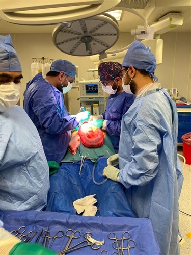 وعلى وجه السرعة، تم تجهيز المريض ودخوله إلى غرفة العمليات لإجراء استكشاف جراحي للبطن، تمكن الفريق خلاله من فك الالتفاف وإجراء تحويل مؤقت لمجرى البراز (Colostomy) لضمان استقرار الحالة ومنع المضاعفات.