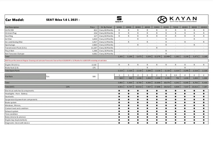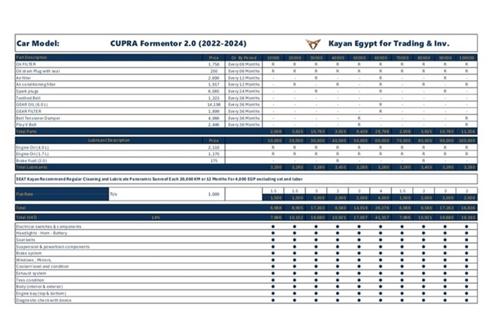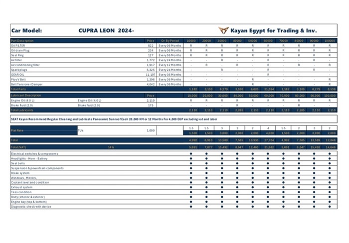 "كيان مصر" تعلن أحدث التعديلات علي أسعار الصيانة الخاصة بعلامتي سيات وكوبرا